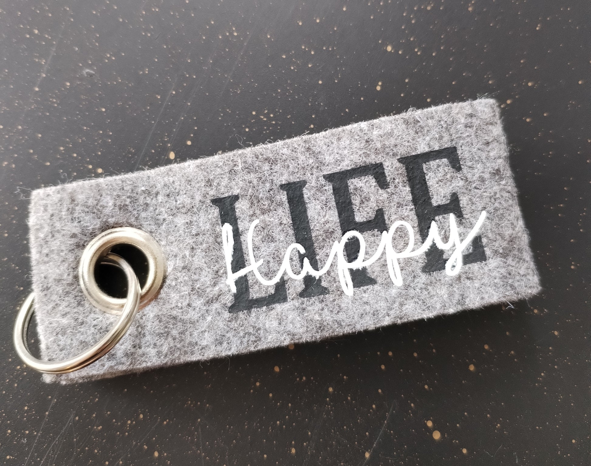 Filz Schlüsselanhänger happy life